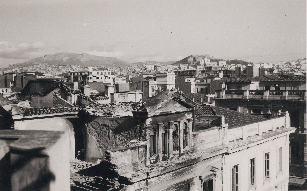 The center of Athens, after the bombing of the city by the British. Photo Gladys Davidson Weinberg, January 1945. Source: ASCSA Archives, Saul and Gladys Weinberg Papers.