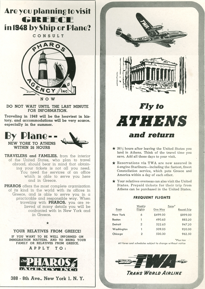 At the same time, a new kind of philhellenism would flower in America, one stemming from the nation’s “courageous stand against the invaders, the work of the Greek War Relief Association and AHEPA, the Truman Doctrine [and] the Marshall Plan. … The period after 1940 was one of soaring philhellenism” wrote Theodore Saloutos in his well-known treatise, The Greeks in the United States (1964). The new philhellenes were no longer affluent Americans who had grown up studying ancient authors in ivy league universities, but Americans of Greek origin, who most likely had not studied Plato or Aristotle, with a revived interest in the mother country and hordes of them visiting the land of their fathers and forefathers (Saloutos 1964, p. 386).