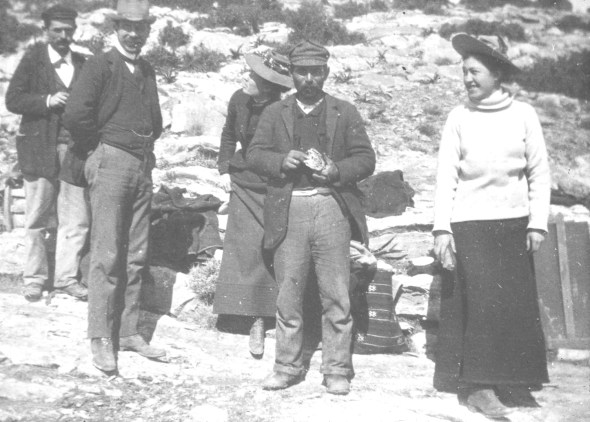 Charles Weller (second left) and Ida Thallon (right) excavating the Vari Cave, 1901. ASCSA Archives, Archaeological Photographic Collection.