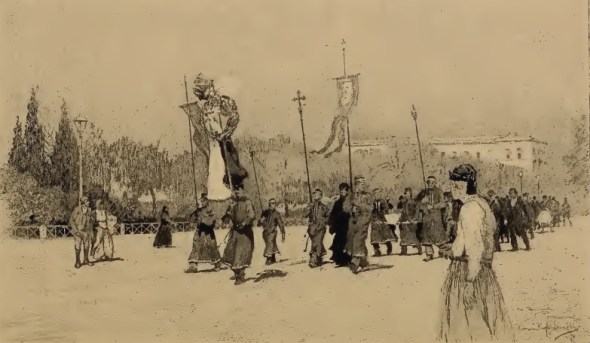 Greek funeral as illustrated by Corwin Knapp Linson. Source: George Horton, Modern Athens (1901), p. 66.