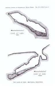 Posted: April 1, 2017 Filed under: Archaeology, Archival Research, Biography, Food and Travel, History of Archaeology, Mediterranean Studies, Modern Greek History, Philhellenism, Women's Studies | Tags: American School of Classical Studies at Athens, Charles H. Weller, George Horton, Ida Thallon Hill, Lida Shaw King, Vari Cave 10 CommentsOn February 17, 1901, a young American archaeologist and member of the American School of Classical Studies at Athens (ASCSA or the School hereafter) was “roaming over the city in search of Mr. Kavvadias, the general ephor of antiquities in Athens, in order to get a permit to begin work at Vari tomorrow” (letter of Charles H. Weller to his wife). Together with a small group of students from the School, he had conceived of the idea of conducting a small excavation at the Vari Cave on the southern spur of Mount Hymettus, near the ancient deme of Anargyrous. Known since the 18th century, the cave had been visited and described by several European travelers who were particularly taken by the reliefs and inscriptions carved on its walls.