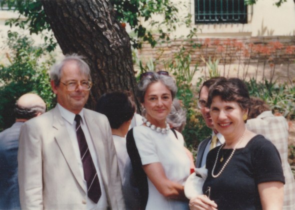 Robin Haag, Ludmila Schwarzenberg, Matthew Dickie and Betsy Gebhard, ASCSA gardens 1992. ASCSA Archives, Photographic Collection.