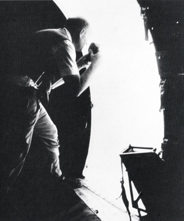 Fr. Schoder photographing from an airplane. Source: Sutton 1989.
