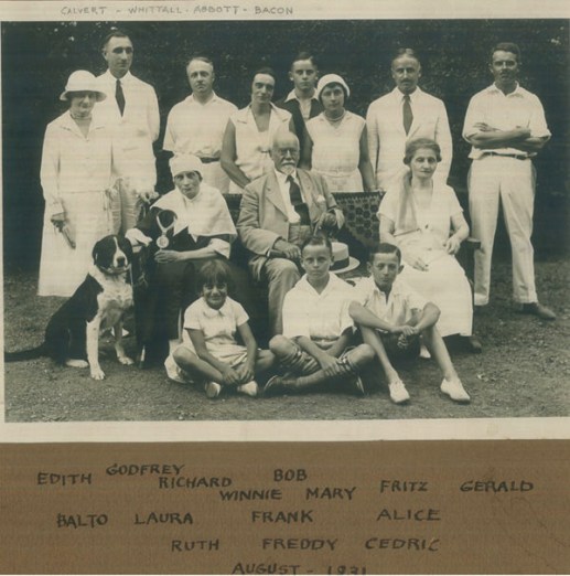 The extended Calvert family, 1931. Francis Bacon seated in the middle, Alice to his left. Source: Levantine Heritage, Testimony 16.