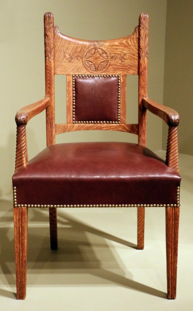 In 1914, A.H. Davenport merged with another successful furniture firm, Irving and Casson.  In the website of Historic New England, which acquired the Irving and Casson – A. H. Davenport Co. archive, I discovered several of Francis Bacon’s designs, easily identified by his signature initials: FHB.  One of the most important clients of the merged firm was the great American entrepreneur and founder of Eastman Kodak, George Eastman (1854-1932).  Bacon designed most of the furniture for Eastman’s house in Rochester, New York (now the George Eastman Museum). In addition, signature chairs by Bacon are on display both in the Art Institute of Chicago and the Metropolitan Museum of Art.