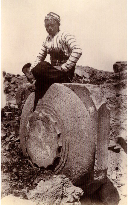 Assos Excavations. Local boy sitting on top of Doric capital. Photo by John H. Haynes, who participated in the excavations. For his photography, see Robert G. Ousterhout, John Henry Haynes: A Photographer and Archaeologist in the Ottoman Empire 1881-1890, Hawick 2012. (There is also a wonderful video by Ousterhout.)
