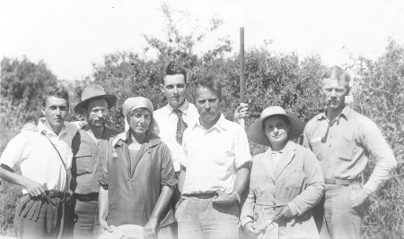Colophon 1922. From left to right: Benjamin Meritt, Franklin P. Johnson, Lulu Eldridge, Kenneth Scott, Leicester Holland, Hetty Goldman, and Carl Blegen. ASCSA Archives, Excavation Records, Colophon Excavations.