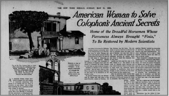 Davis discovered that, while negotiating for Colophon, Capps and Bert Hodge Hill, the School’s director from 1906 to 1926, entered into discussions with the Greek administration in Izmir for the exportation of antiquities from Sardis to America. It is probably not preposterous to say that if Greece had not lost the war in 1922, Capps and Goldman would have facilitated the exportation of antiquities from Colophon as well. As a result, the Turkish authorities, who were upset with the American School’s opportunism, denied its return to Colophon in 1923.