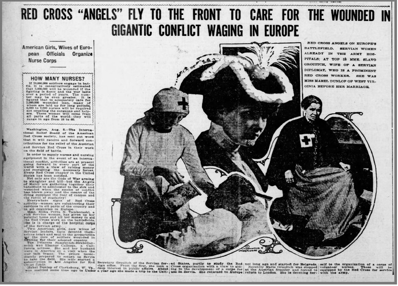 By 1914, the Grouitch couple was living in Belgrade since Grujić had been appointed as secretary-general of the Serbian ministry of Foreign Affairs. According to historian Christopher Clark, Grouitch was one of the main contributors of the reply to the Austrian-Hungarian ultimatum of July 23rd, 1914, which was “a masterpiece of diplomatic equivocation” (Clark 2013, p. 464).  Despite her skilled diplomacy, Serbia did not escape the war with the Austro-Hungarian Empire. Soon after, Mabel went to London where with her own expenses she led a team of 10 English nurses and two surgeons to Serbia to help the wounded and organize relief aid in the battlefield (The Baltimore Sun, August 20, 1914).