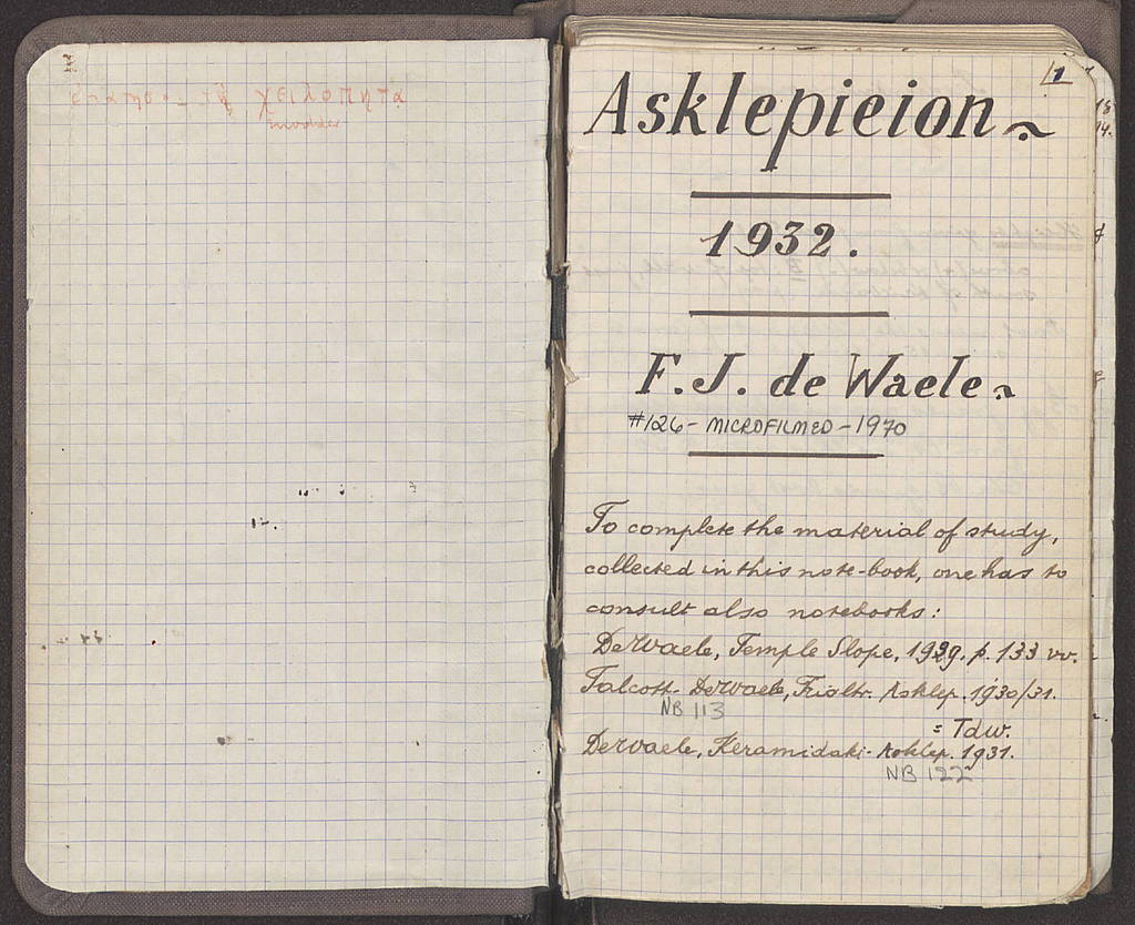 De Waele’s excavation notebook of the Asklepieion. Source: ASCSA, Corinth Excavations Archive.