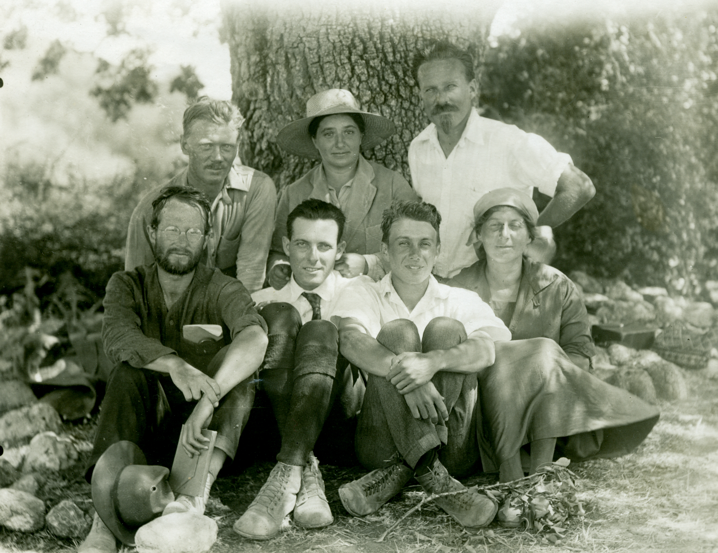 Members of the Colophon Excavation team. Bottom (l-r): Franklin P. Johnson, Kenneth Scott, Benjamin D. Meritt, Lulu G. Eldridge. Top (l-r): Carl W. Blegen, Hetty Goldman, and Leicester B. Holland.