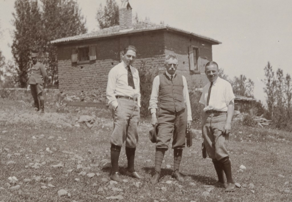 George Horton (in the middle) and vice-consuls Maynard Bertram Barnes and A. Wallace Treat visiting Colophon excavations in early May 1922. ASCSA Archives, Carl W. Blegen Papers.