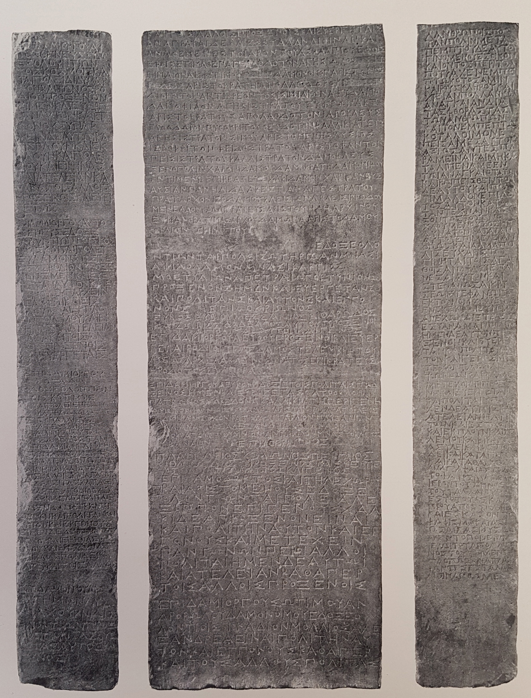 The guiding spirit for the construction of the Elounda canal was Émile Dupourqué (1859-1939), commander of Spinalonga and first lieutenant of the Amiral Charner. During the excavations for the canal, which lasted a year (1897-1898), the French army discovered the ruins of ancient Olous, including an early Christian basilica with a beautiful mosaic. According to oral testimonies, when the French found the mosaic they fired 21 canons out of joy (Makrakis 2017). In February 1898, Destelle paid a visit to the small museum in Spinalonga that the French army had built in order to house the finds from the excavation of the canal. He had heard about a large (H. 1.25; L. 0.45; 0.19 thickness) and important inscription which was about to be taken to the Louvre (1898, 54-55). The inscription, first published by Joseph Demargne (1870-1912) in the Bulletin Correspondance Hellenique (1900, 222-246) and later included by Margherita Guarducci in Inscriptiones Creticae I, preserves a proxeny decree recording names of people who were granted proxeneia, including that of a Macedonian, Patroclus, son of Patron. He was later identified as stratêgos Patroclus, the one who led the Ptolemaic fleet against the Macedonian king Antigonus Gonatas in the 260s B.C. As part of his Aegean campaign, Patroclus secured a number of bases in Attica and on Crete, Kea, and Thera.