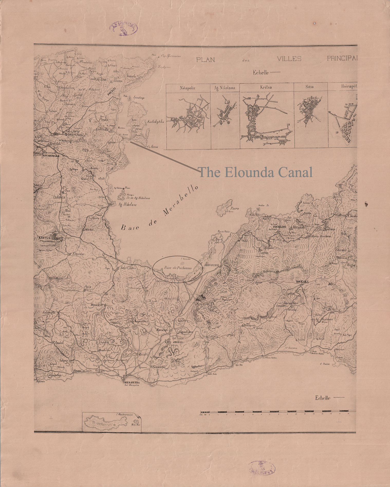 In addition to improving the infrastructure of the Lasithi region by building or repairing roads and bridges, the French undertook a more ambitious project: the construction of a canal at Elounda, which would shorten the boat ride from Spinalonga to Agios Nikolaos by an hour. Canal building became the hallmark of engineering in the 19th century, offering tremendous improvements in navigation and long distance trade. In the Mediterranean two of the most important canals, the Suez (1869) and Corinth (1893) canals, had already been opened by French companies.