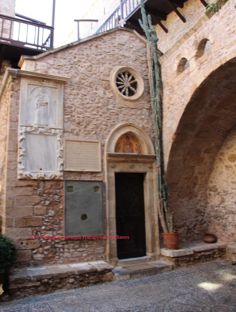 While on one of his frequent visits to Spinalonga, Destelle met Victor Bérard (1864-1931), an enlightened professor at the École des Hautes Études and former student of the French School in Athens (1887-1890), who, according to a recent article, “was also passionate about the Eastern Question and campaigned for the peoples subject to the Ottoman Empire” (Basch 2015). A few days later Bérard would join Destelle on an excursion to the Toplou Monastery (1897, 310-314). Bérard explained to his companions the content of the large inscription at the entrance to the church. Found by Admiral Spratt in 1853, it was brought to the church and immured there on Spratt’s initiative. This (now famous) inscription of the late 2nd century B.C. preserves the largest part of an arbitration of the conflict between the cities of Hierapytna and Itanos over the control of the Sanctuary of Zeus Dictaeus and the island of Leuke. (On the inscription, content, and copies, see Ager 1996, 431, no. 158.)