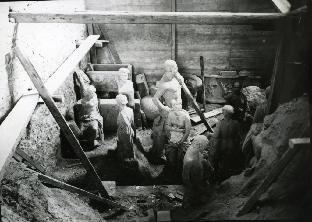 In some cases, the protective measures were well documented through protocols and photographs. Especially in the center of Athens, every effort was made to bring the inventory of the museums to safety. The focus was on the National Archaeological Museum, the Acropolis Museum, the Numismatic Museum, the Byzantine Museum, and the Kerameikos Museum.