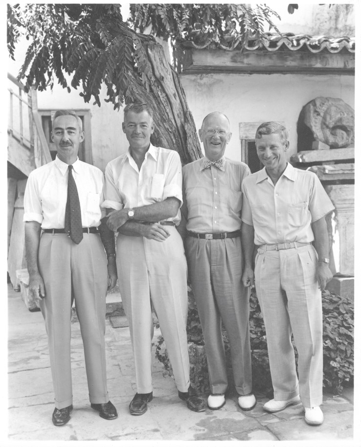 John (Jack) Caskey, Charles Morgan, Ward Canaday, Homer Thompson in the inner court of the Agora dig house ca. 1955. ASCSA Archives.