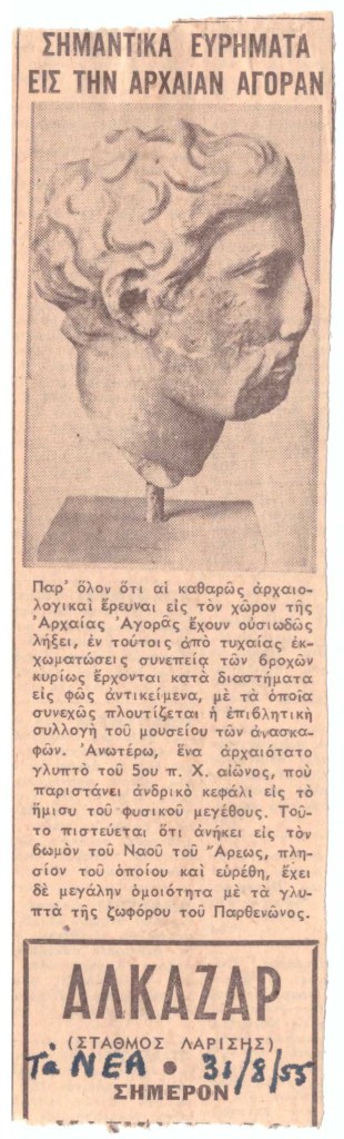Since the head had never been published, Meliades urged Vanderpool “to publish it as soon as possible so as to make public the claim to it.” The next day Vanderpool supplied journalist Makis Lekkas of Vima (BHMA) and Nea (NEA) with a short text and a photo which gave the appearance that the Hermes’ head had just been found during cleaning operations in the area of the Temple of Ares. Vanderpool further suggested to Thompson that the theft should be included in the School’s Annual Report, “so that it will become known in the scholarly world. Then if an attempt is made to sell it to a museum it can be identified. Meliades tells me that if a foreign museum buys it, the Greek Gov[ernmen]t can reclaim it as stolen property under existing international agreements.” As planned, on August 31, a short piece appeared at NEA, titled “Σημαντικά ευρήματα εις την Αρχαίαν Αγοράν” (Important finds at the Ancient Agora).