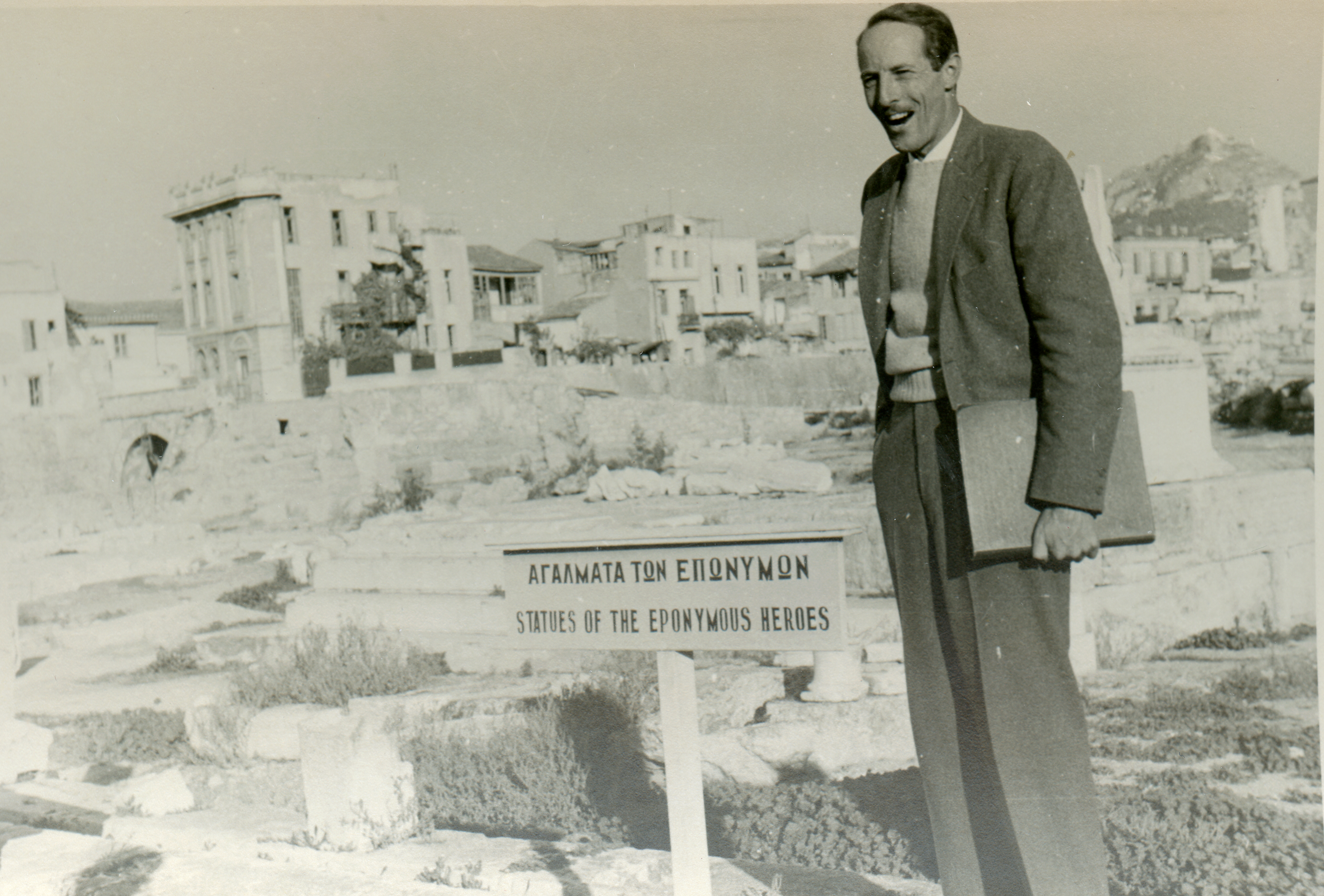 Eugene Vanderpool (1906-1989) lecturing at the Agora excavations, Dec. 1951. ASCSA Archives, Martha Heath Wiencke Papers