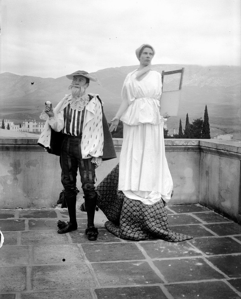 The next “wax figure” to appear in the show was Sappho enacted by Margery K. Welsh (1880-1960), a student from the British School of Archaeology. “Miss Welch was Sappho, all in a white Grecian costume (otherwise a sheet) with a lyre. She had to throw herself off a crag and then be set up on her crag again ready for next time.” With a B.A. from Newnham College, Welsh spent several months in Greece in 1903-04 studying portraits and honorific statues which she published as an article the following year.