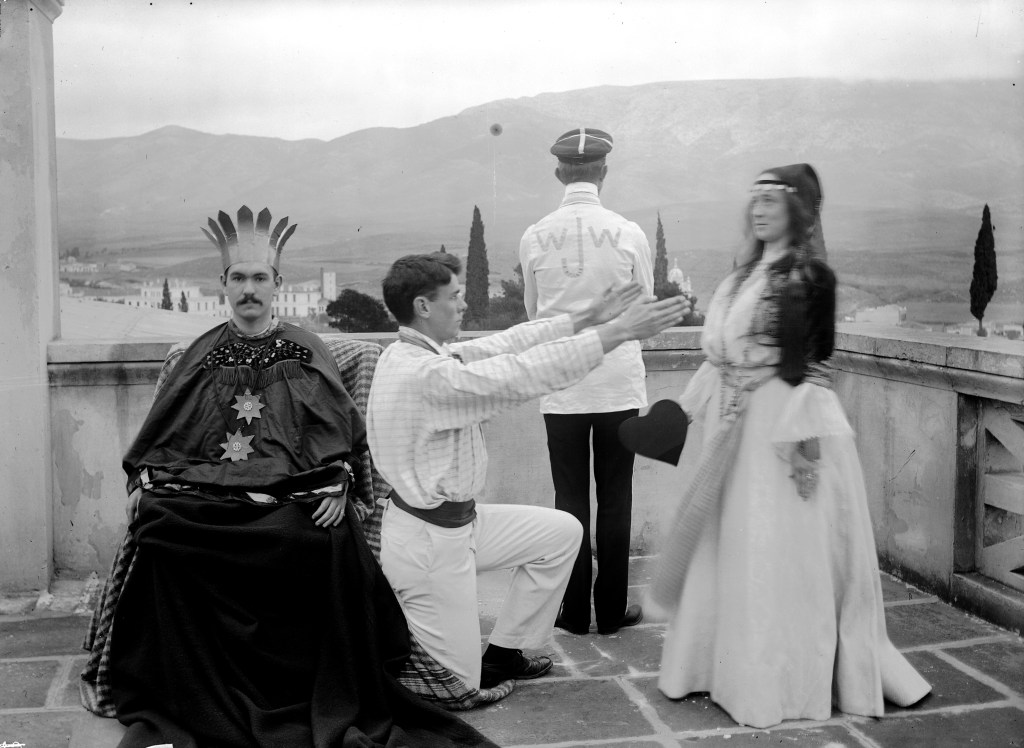 Although the performance was staged in the library, the photos were taken on the roof of the Director’s House, most likely before, in order to make use of the natural light. Amateur interior photography was notoriously difficult for the largest part of the 20th century.