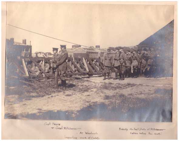 A year later, Pears sent to Bacon through his father, the Levantine lawyer and distinguished historian Sir Edwin Pears (1835-1919), who came to Boston to lecture, a rare photograph that showed him and General Kitchener inspecting cadets at Woolwich. “It is of interest as it is the last picture of Kitchener,” wrote Guy Pears to Bacon on Sept. 29, 1916. Lord Kitchener (1850-1916), who built England’s first mass army in 1914 and is also known for his colonial victories in Sudan and South Africa, was drowned in June 1916 when his vessel struck a mine.