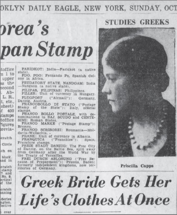 A publicity photo of Priscilla Capps, 1932. Source: The Brooklyn Daily Eagle, 16 Oct. 1932, p. 36.