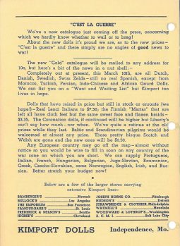 Include a Bravest-Little-Soldier-in-the-World via KIMPORT DOLLS on your order.-50c.” (Doll Talk vol. 4, no. 2).