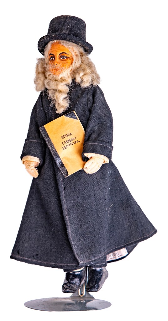 [7] The book he carries is, however, Payssy from Hilendar’s Istoriya Slavyanobulgarskaya (1762). Our own “Father Luke” dolls in the ASCSA Archives are missing their duck feather pen, but it was present in the illustration in Doll Talk, vol. 2, no. 7, when he was advertised early in 1939.