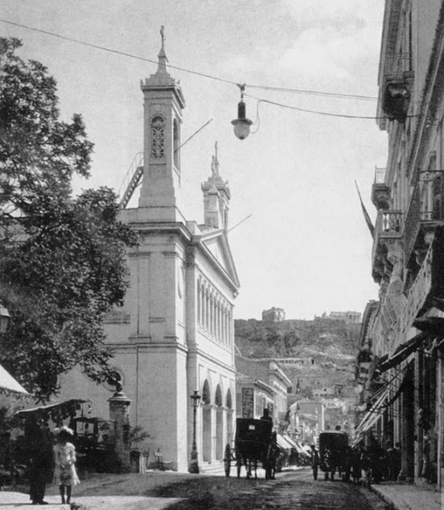 The Russian Church on Philellinon Street, ca. 1870. Photo Source: Ε. Γ. Σκιαδάς, “Η Σώτειρα του Λυκοδήμου (Αγία Τριάς) της οδού Φιλελλήνων,” Τα Αθηναϊκά, 6/8/2019.