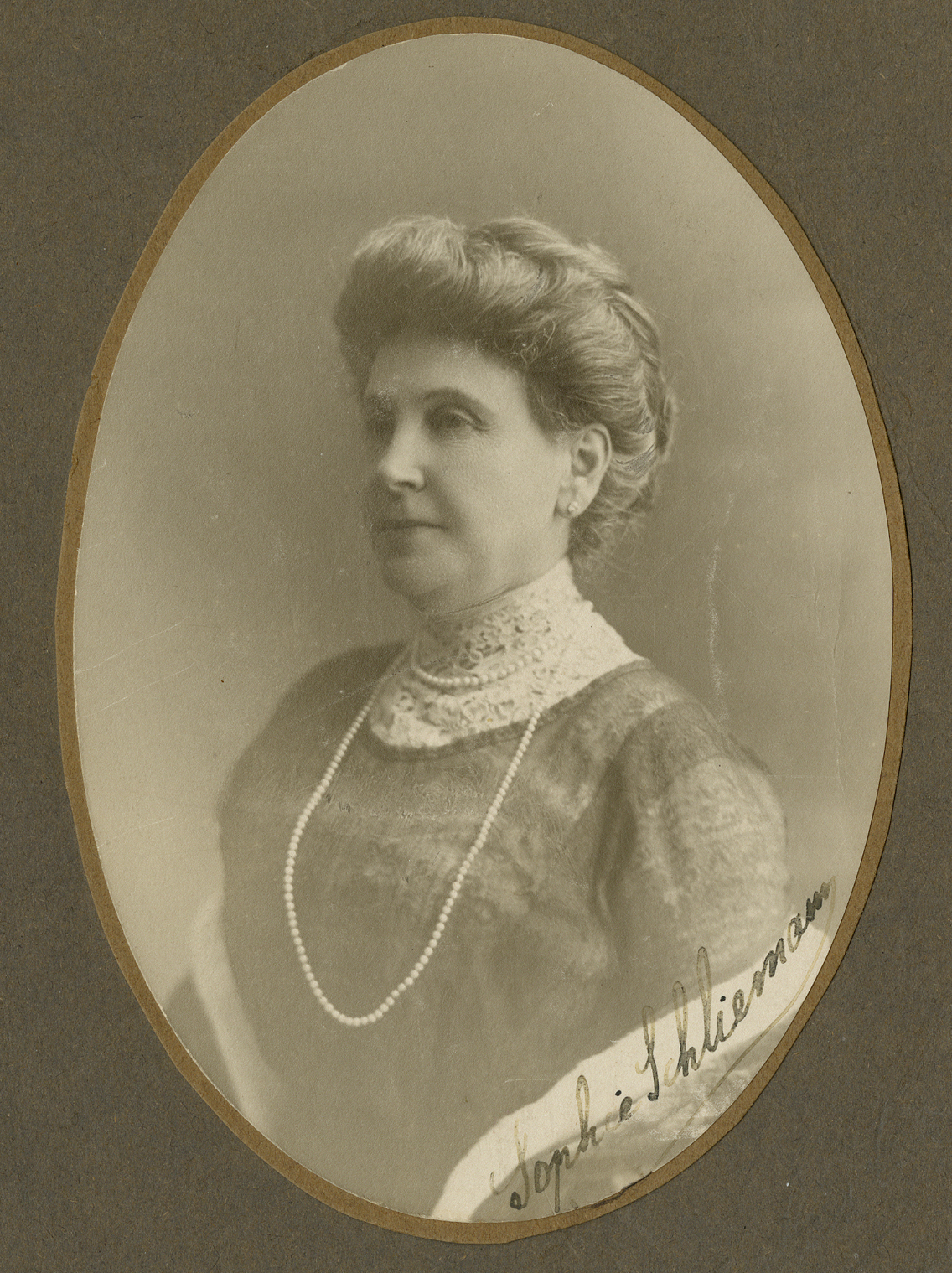 Heinrich Schliemann came to Greece in 1869, having sold his businesses in Russia and divorced his Russian wife. Schliemann was looking for a new partner to share his dream of excavating the Homeric citadels of Troy and Mycenae, so as to prove that the Iliad was not a fairy-tale. In September 1869 Heinrich married Sophia Engastromenou. He was then 48 years old, and she was 18. Following an unsuccessful honeymoon, in the course of which the couple were on the verge of divorce, Schliemann left for Troy to start excavating. The couple did not separate, and in fact they became famous for their discoveries, remaining together till Heinrich’s death in 1890. In 1936 their children, Andromache and Agamemnon, donated their Papers to the American School of Classical Studies at Athens.