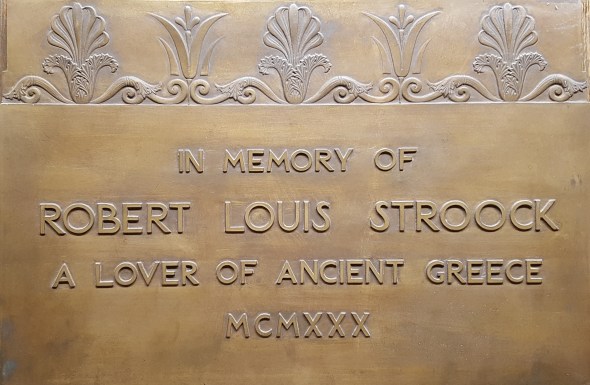 Posted: August 1, 2018 Filed under: Archaeology, Archival Research, Biography, Greek Folklore, History of Archaeology, Jewish Studies, Philhellenism | Tags: Robert L. Stroock, Sol M. Stroock 10 CommentsIn the Main Reading Room of the Carl and Elizabeth Blegen Library in Athens, on the narrow side of one of the old bookcases, hangs a heavy bronze plaque inscribed: “In Memory of Robert L. Stroock: A Lover of Ancient Greece. MCMXXX”.