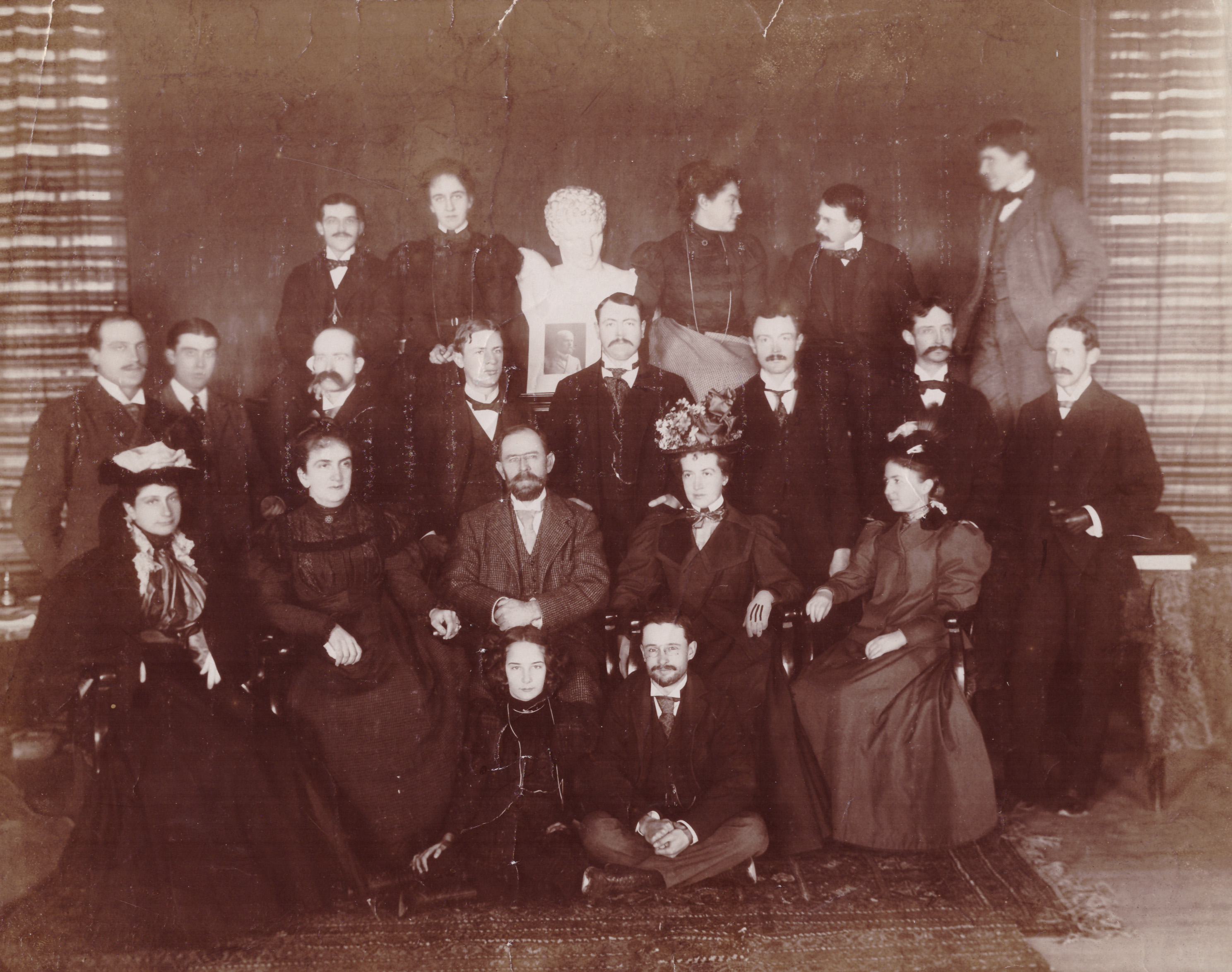 The Director of the School, Rufus Richardson, and his family joined the crowd at the Merlin House. “The Richardsons were the only outsiders here and after they were gone, you would have been amused to see the scene in the hall -tiny little Benjamin [the son of Benjamin and Amey Wheeler] with a gun and diminutive horn, Dr. Wheeler following him with a drum, Prof. Lord [George Dana Lord] with another horn, Mrs. Lord, Mrs. Wheeler, Miss Walton and I following with feather dusters or such other implements of warfare as we could find, marching in solemn procession up and down the hall.”