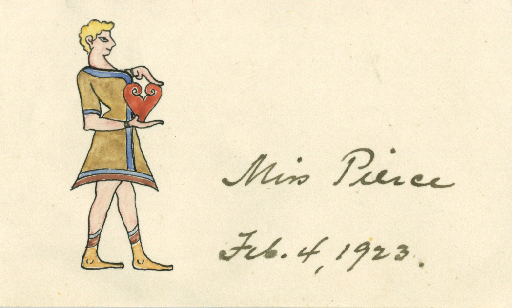 It is always dangerous to over-intellectualise love, particularly when expressed by a man to a woman on Love’s own holiday, but it is difficult, nonetheless, for scholars to avoid casting an academic eye on the caricature produced by Piet de Jong for Carl Blegen’s 1923 Valentine to his future wife, Elizabeth Pierce (see “My heart is beating: February 13, 1923”), as posted recently to this blog by Natalia Vogeikoff. For the drawing that de Jong produced must be a caricature of Blegen himself, one immediately recognizable from the distinctive blond hair. That makes this modest little drawing one of the very first in a series that de Jong famously executed in Greece during the 1920s and 1930s, and that were later collected and published by Rachel Hood in 1998. Read the rest of this entry »